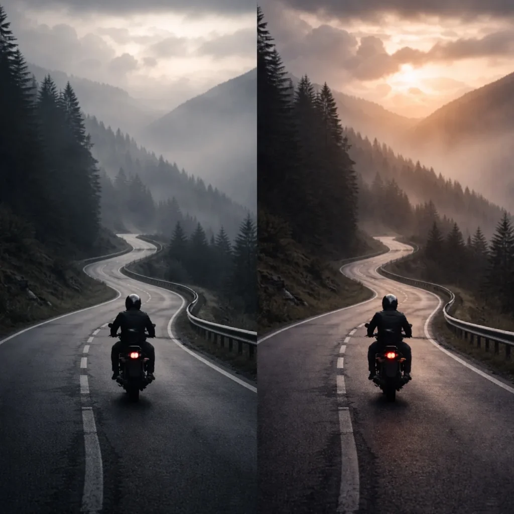 Une route, deux réalités — montage de deux images générées par ChatGPT.