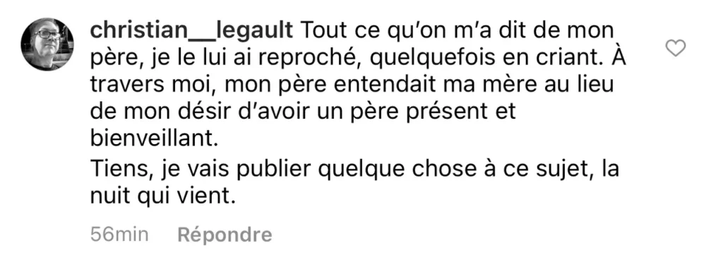 - Si tout ce que j’ai dit s’est avéré, ça m’apparaît débile de continuer à vouloir me trahir ou de symboliser la trahison. Ce fonctionnement décrit sur mon blogue et dans l’intelligence artificielle est celui de la vie qui cherchera toujours à s’organiser parce que c’est dans l’ADN de celle-ci. Sanctificateur ou pas.