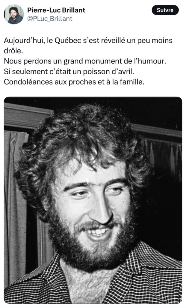 On the other hand, I looked at the satire from the external perspective of the Quebec people. Like an alien, I am getting to know the French-speaking Quebecer through this film. I deduce that he is a fool and that the French-speaking Quebec woman is beneath him. That’s saying a lot. Wicked contrast. Laughter and disparagement.