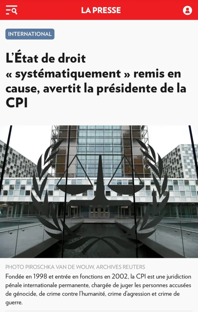 Internationally, I defended organizations like the UN and the ICC to ensure that the principles of a dignified humanity are respected. People will speak to me of the Canadian Charter, but I see in it a cognitive bias in favor of the Anglophone. This is what a Rule of Law means to me.