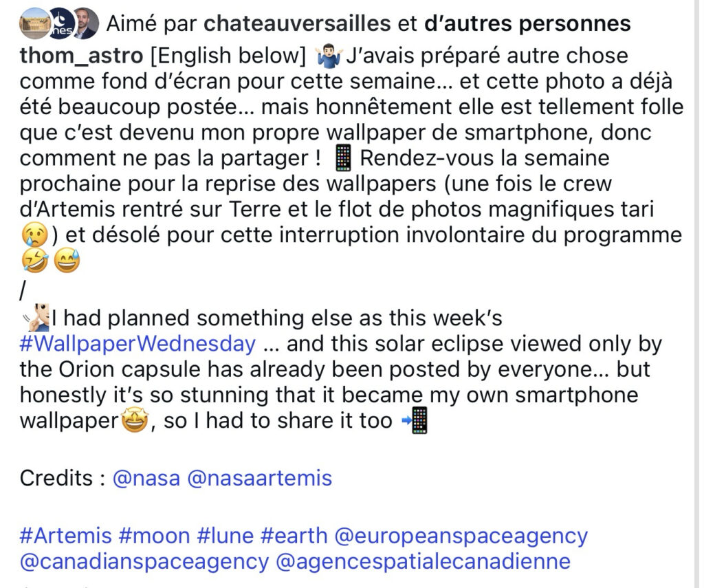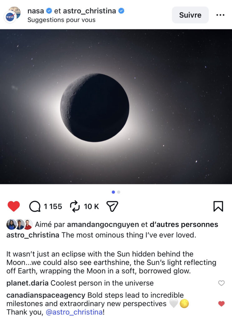 Avec mes lunettes, je regardais l’éclipse de soleil du toit d’où j’habite. C’était extraordinaire. Le phénomène frappait l’imaginaire en vrai. Est-ce que j’aurais eu la même expérience assis dans un engin spatial ?